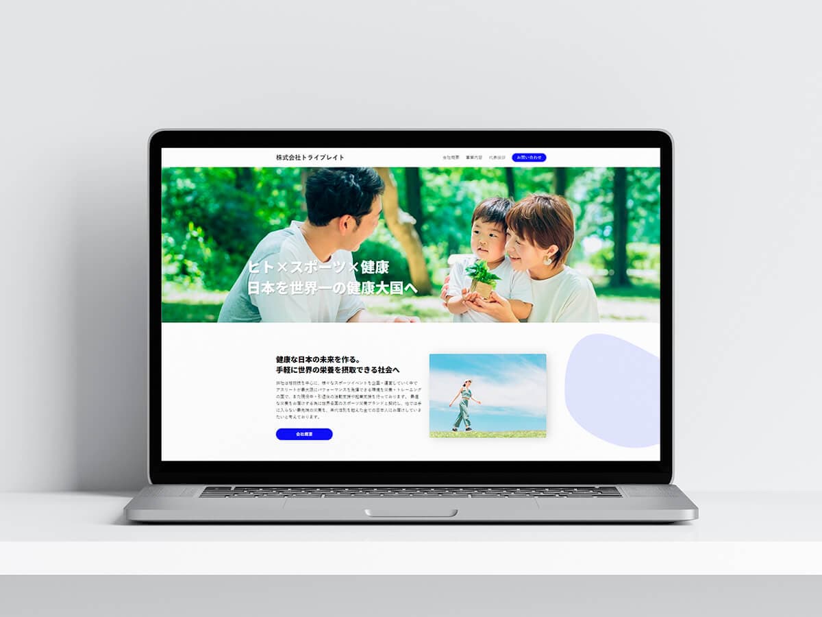 スポーツや健康を事業内容としていることから、健全で信頼さを感じられるように青色を使用し、サイト構成もシンプルな設計にしました。また、今後ブログ機能も使えるようにWordpress化をしています。